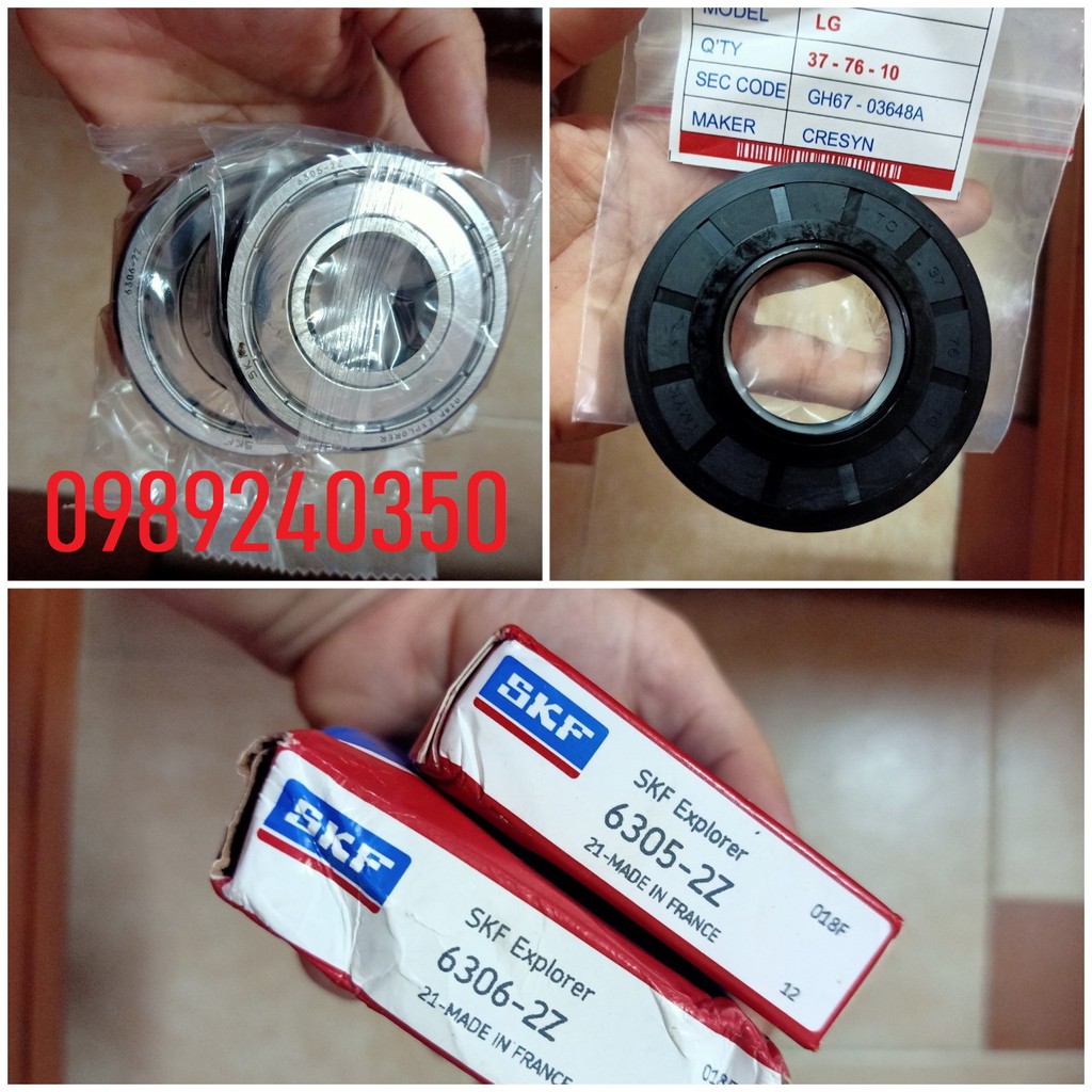 Bộ 2 vòng bi kèm 1 phớt chắn nước máy giặt LG hàng hãng- Bộ hai vòng bi máy giặt LG 6305 và 6306