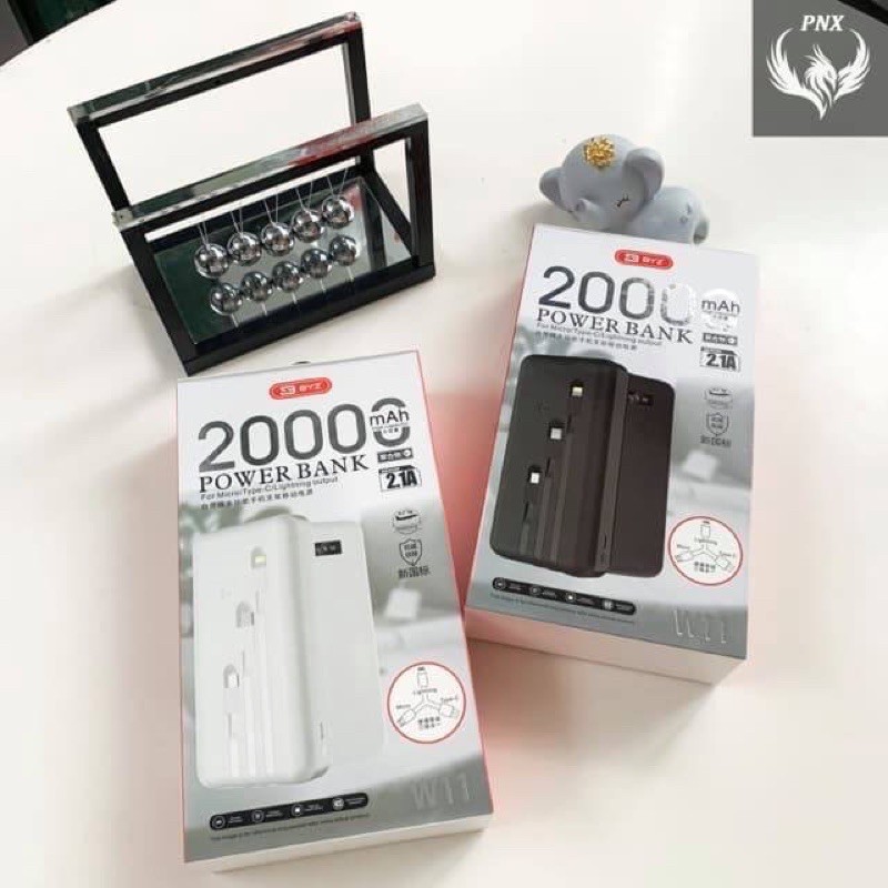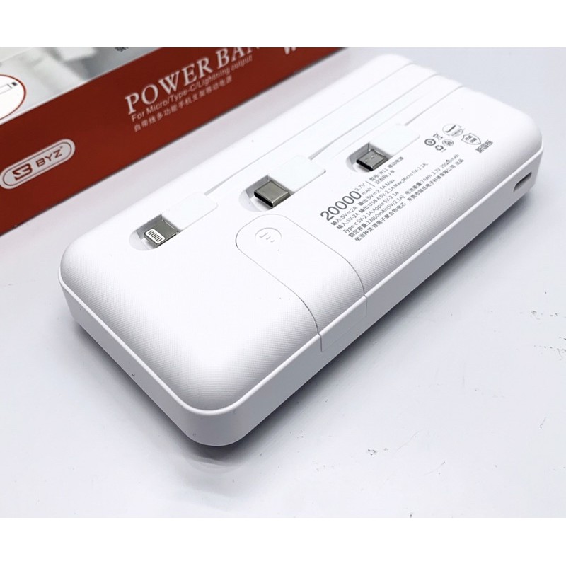 (20.000mah BH 6 THÁNG) Pin sạc dự phòng byz w11 chính hãng dung lượng 20.000mah, 3 dây sạc micro usb,type c,lightning