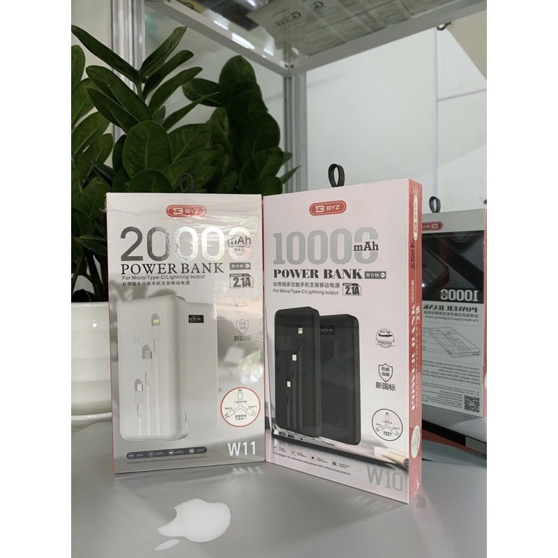 Điện Thoại & Phụ Kiện > Phụ kiện > Sạc dự phòng & Pin > Sạc dự phòng || (20.000mah BH 6 THÁNG) Pin sạc dự phòng byz w11 chính hãng dung lượng 20.000mah, 3 dây sạc micro usb,type c,lightningCòn hàng