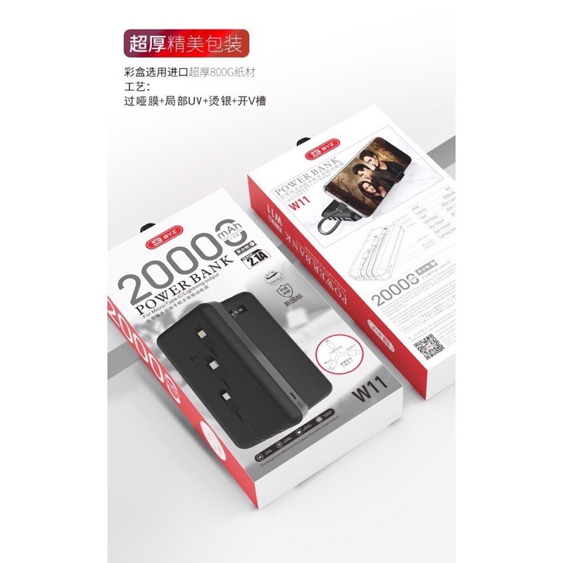Giới thiệu (20.000mah BH 6 THÁNG) Pin sạc dự phòng byz w11 chính hãng dung lượng 20.000mah, 3 dây sạc micro usb,type c,lightning