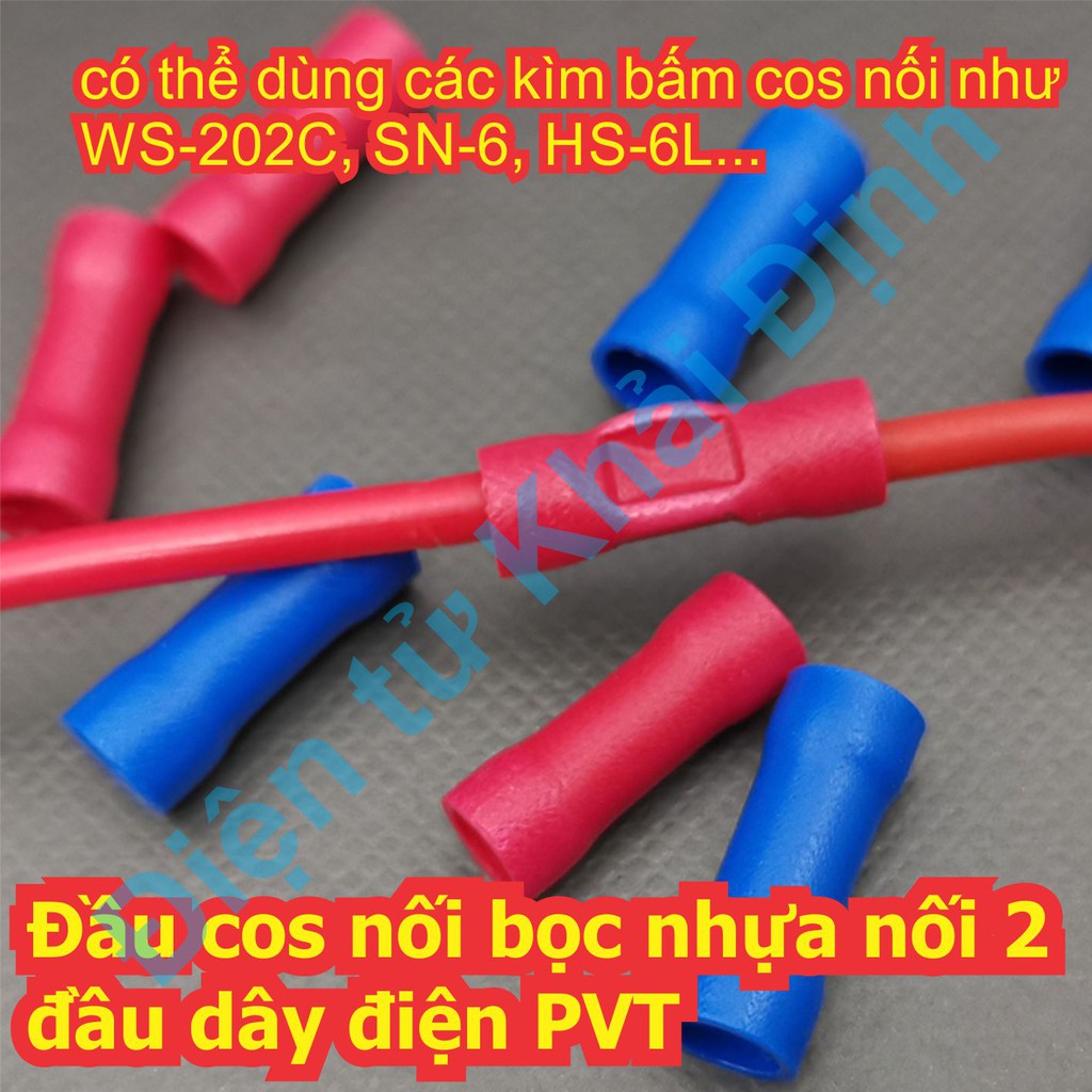 20 cái Đầu cos cosse nối bọc nhựa nối 2 đầu dây điện PVT1.25 màu đỏ nối 2 dây 0.5-1.5mm2 kde6848