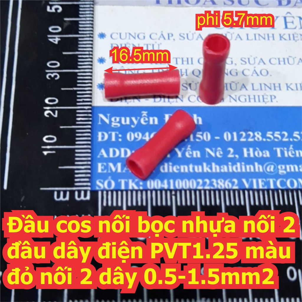 Máy tính & Laptop > Linh Kiện Máy Tính > Khác || 20 cái Đầu cos cosse nối bọc nhựa nối 2 đầu dây điện PVT1.25 màu đỏ nối 2 dây 0.5-1.5mm2 kde6848Còn hàng