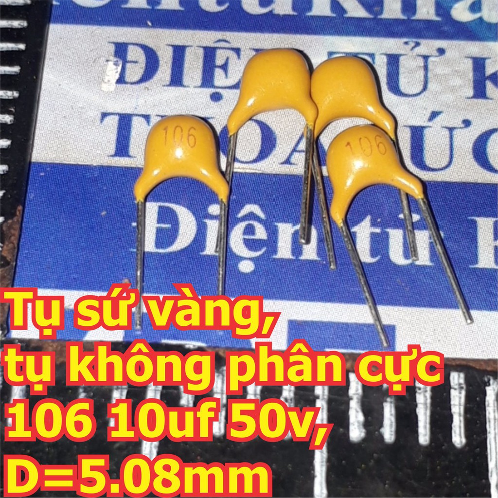 20 con Tụ sứ vàng (xanh....), tụ không phân cực 106 10uf 50v, D=5.08mm kde5636