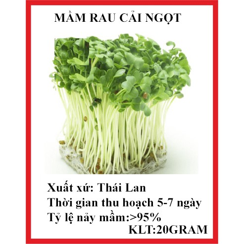 - Giống trồng: Hạt giống mầm cải ngọt.