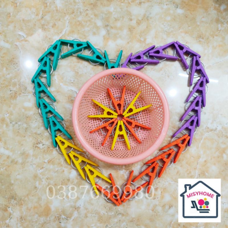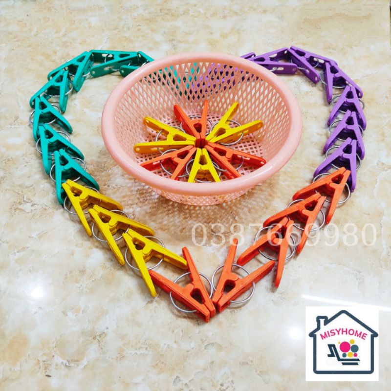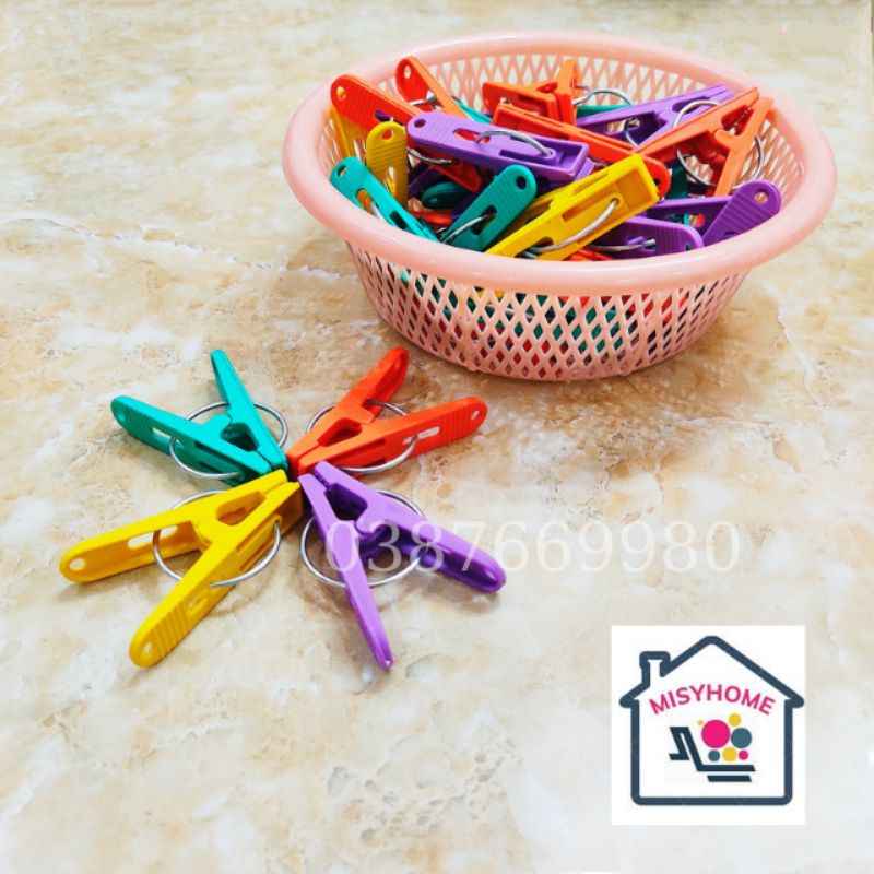 Nhà cửa & Đời sống > Sắp xếp nhà cửa > Mắc áo || 20 kẹp quần áo nhựa kèm rổ cặp khăn tất găng tay khẩu trang chăn màn ga trải giường đồ áo lót nhỏ tranh ảnh MisyhomeCòn hàng