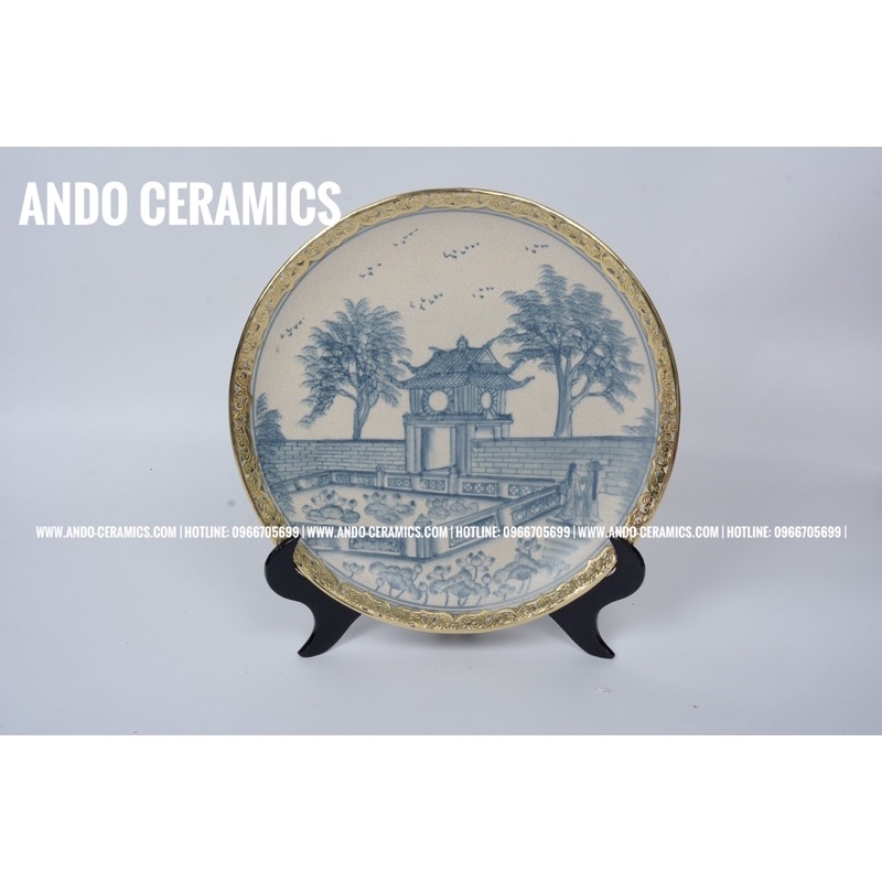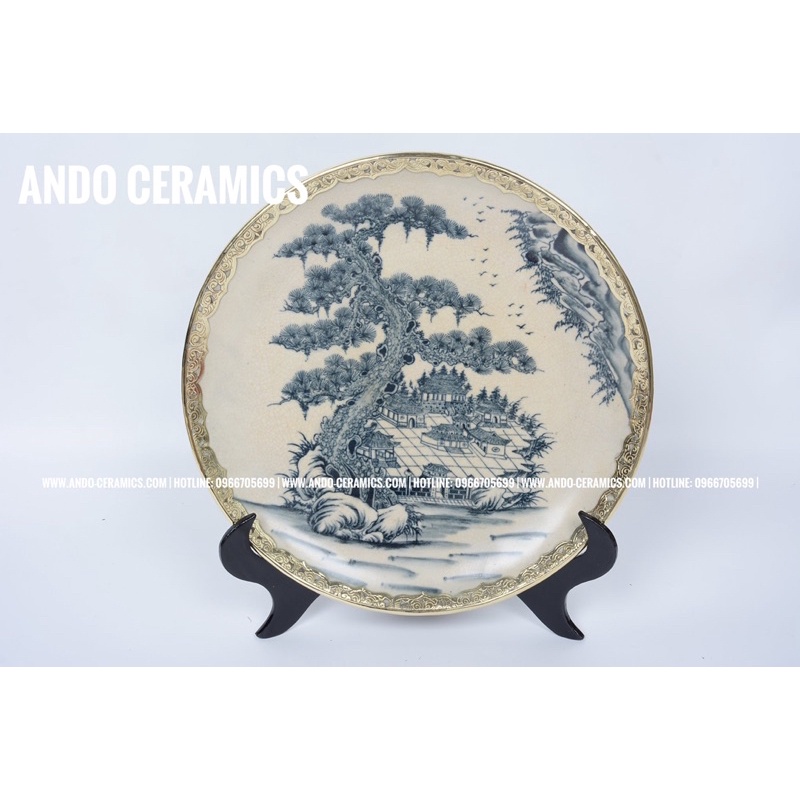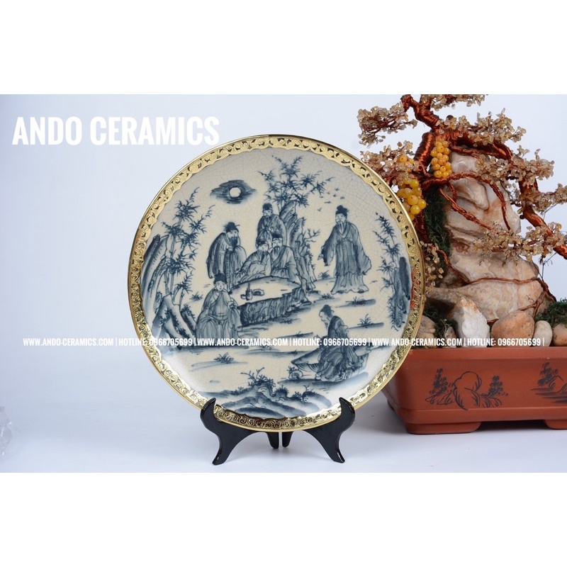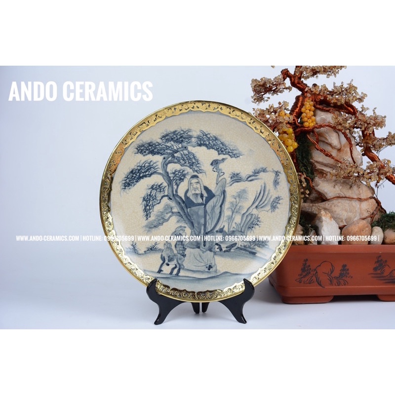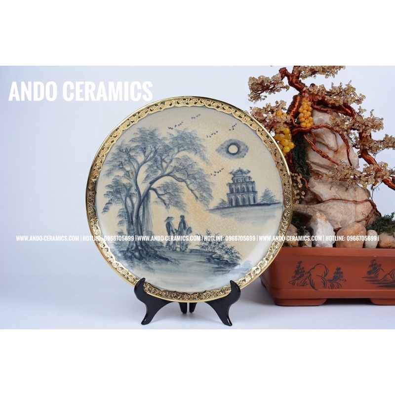 ✨Tên sản phẩm: Đĩa cảnh men rạn bọc đồng vẽ tay✨Chất liệu: Gốm Sứ Bát Tràng