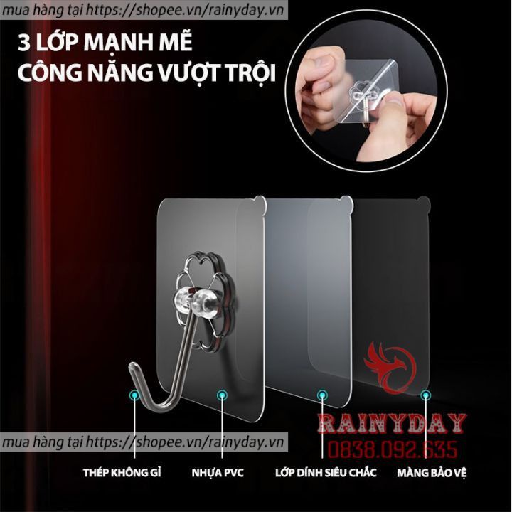Móc dán tường siêu dính treo đồ, miếng dán tường trong suốt siêu dính chắc chịu lực 10kg