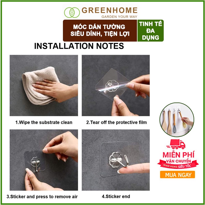 Giới thiệu Bộ 20 Móc dán tường, treo tường D6xR6cm chịu lực tốt, treo vật trang trí phòng khách, đồ dùng nhà bếp |Greenhome