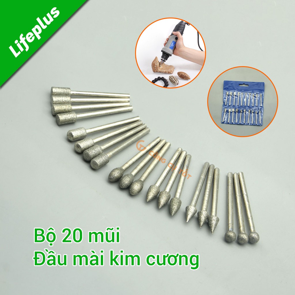Nhà cửa & Đời sống > Dụng cụ & Thiết bị tiện ích > Dụng cụ > Cưa, máy cắt & máy mài || Bộ 20 mũi mài kim cương cốt 3mm ∅6Còn hàng
