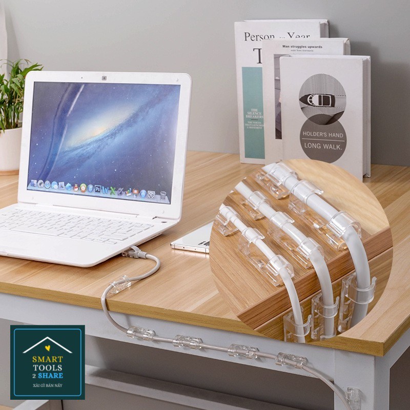 Bộ 20 Nẹp Dán Tường Cố Định Dây Điện Chống Rối Trong Suốt - Kẹp Giữ Dây Cáp Sạc Có Sẵn Keo Siêu Dính