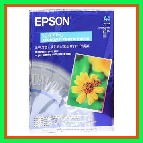 Đặc điểm giấy in ảnh Epson ĐL 230 A4- Là sản phẩm giấy in ảnh khổ A4 có kích thước 210x297mm, được sử dụng rộng rãi trên thị trường hiện nay. Loại giấy in ảnh này có chất lượng cao, tương thích tốt với các dòng máy in phun màu.