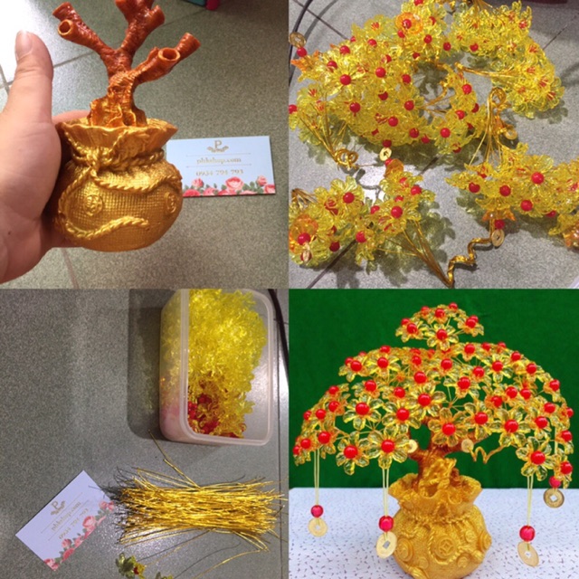 Giới thiệu 20 xu kim loại che nhánh và treo cây kim tiền cành vàng là ngọc