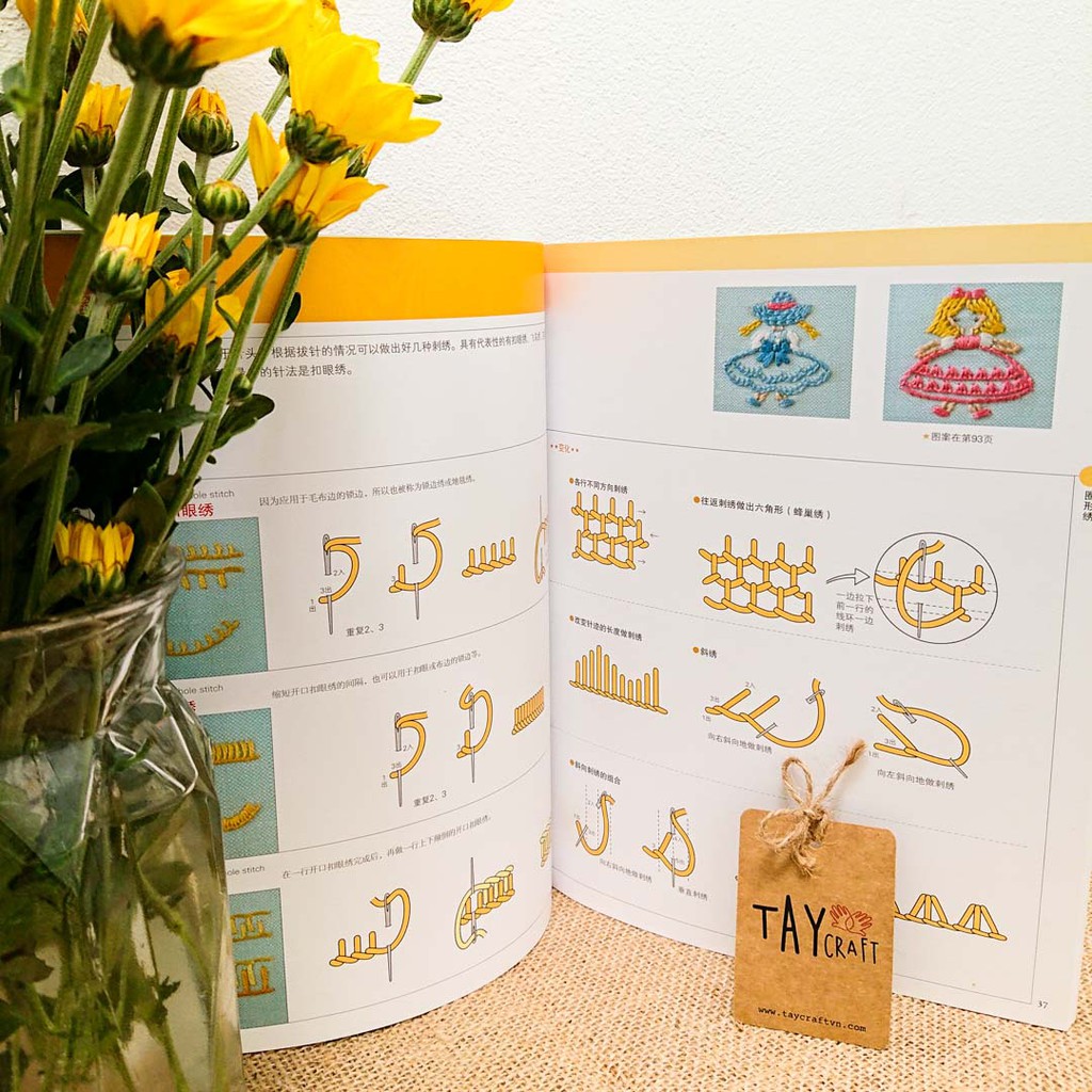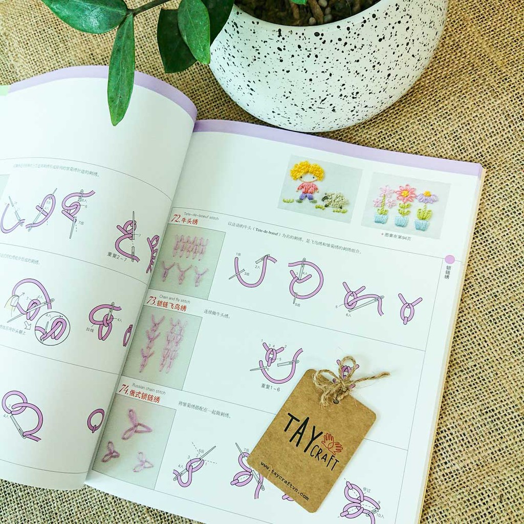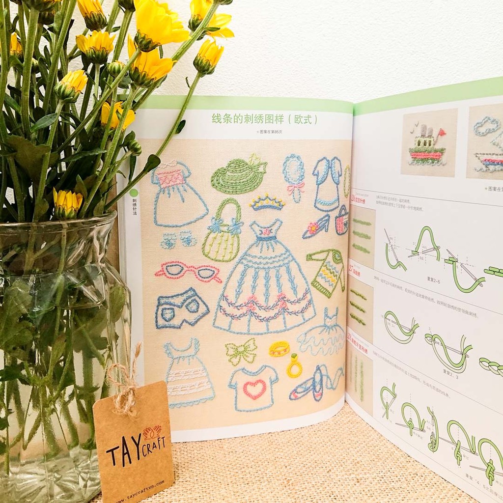 Bộ 200 mũi thêu hiện đại, ruy băng, đính kết, áp vải; các hình thêu về chủ đề hoa lá, gia đình & em bé dễ thương. Hướng dẫn rất xúc tích, hình ảnh trực quan dễ hiểu.Thông tin sản phẩm: