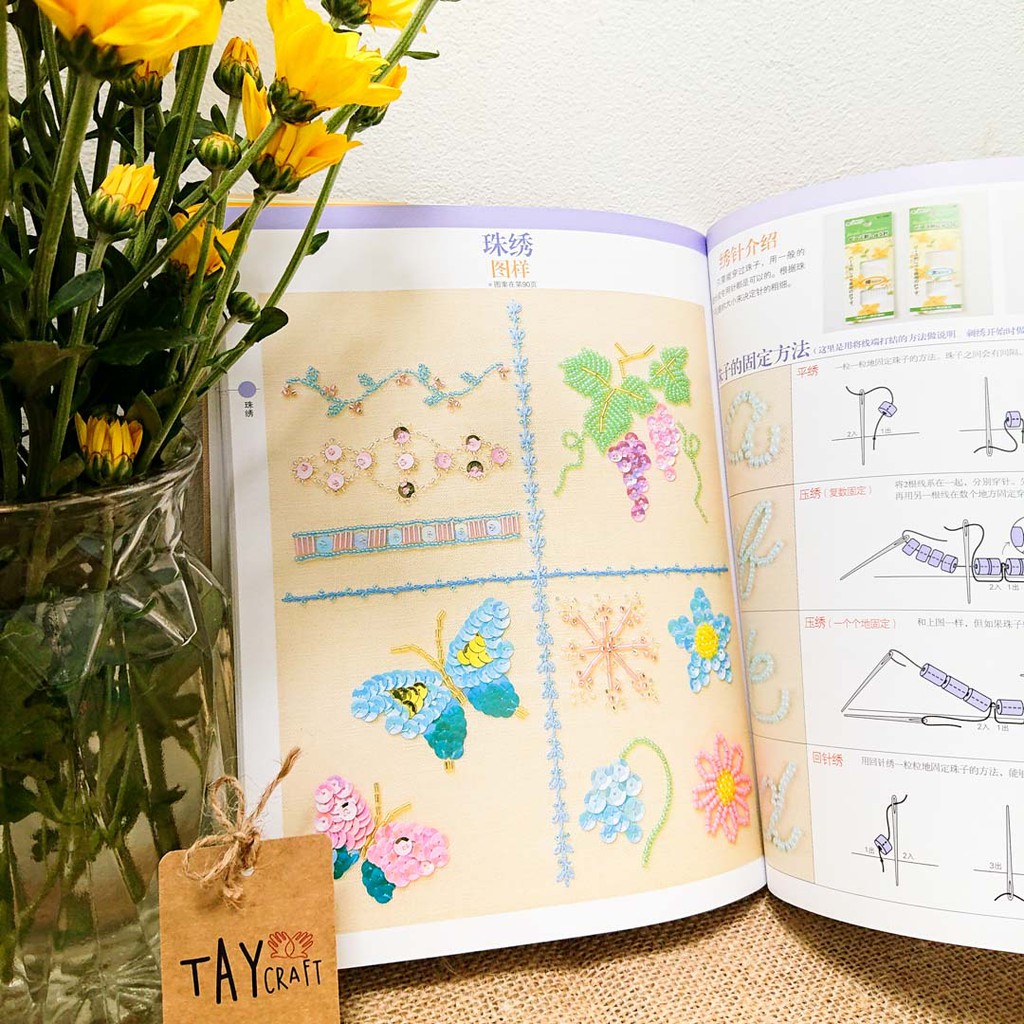 Giới thiệu Bộ 200 mũi thêu đính tổng hợp + họa tiết thêu chủ đề hoa lá & gia đình