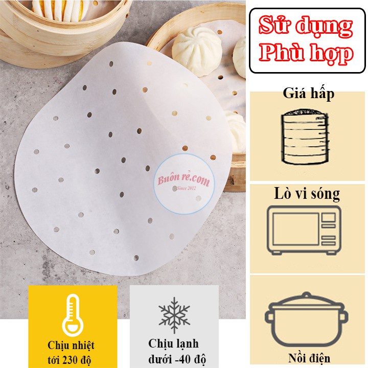 – Giấy nến tròn đục lỗ lót nồi hấp dùng để nướng bánh, hấp bánh bao, ngăn chặn sự bốc hơi quá nhiều của nước làm ướt bánh.