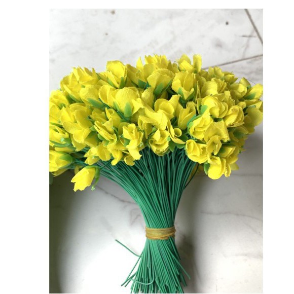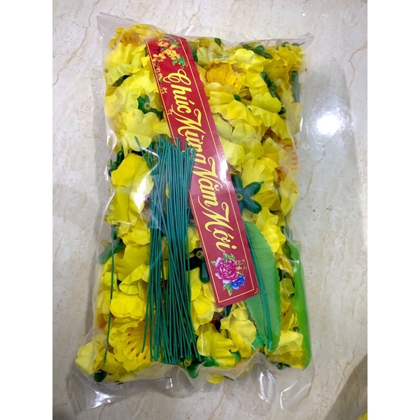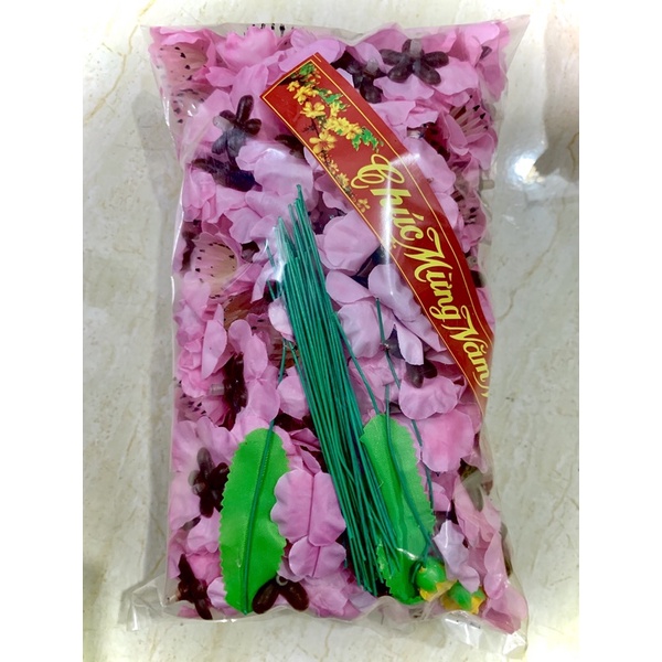 [ 200g] hoa mai đào giả 3 lớp cánh to tặng kèm dây kẽm,lá,nụ kết cây trang trí,hoa lụa