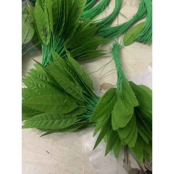 200g bông mai đào cánh to 3 lớp khoảng 130 bông + 2 lá 2 nụ+ dây kẽm