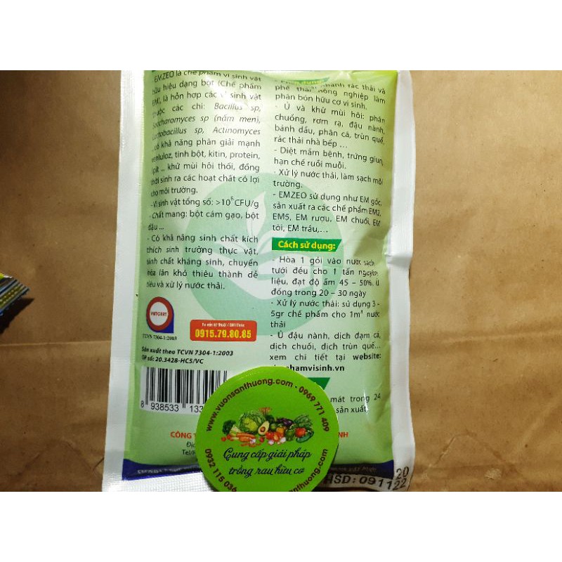 Giới thiệu 200gr Chế Phẩm Vi Sinh Xử Lý Chất Thải Hữu Cơ Emzone Đức Bình, Hỗn Hợp Bacillus sp, Lactobacilus sp,...