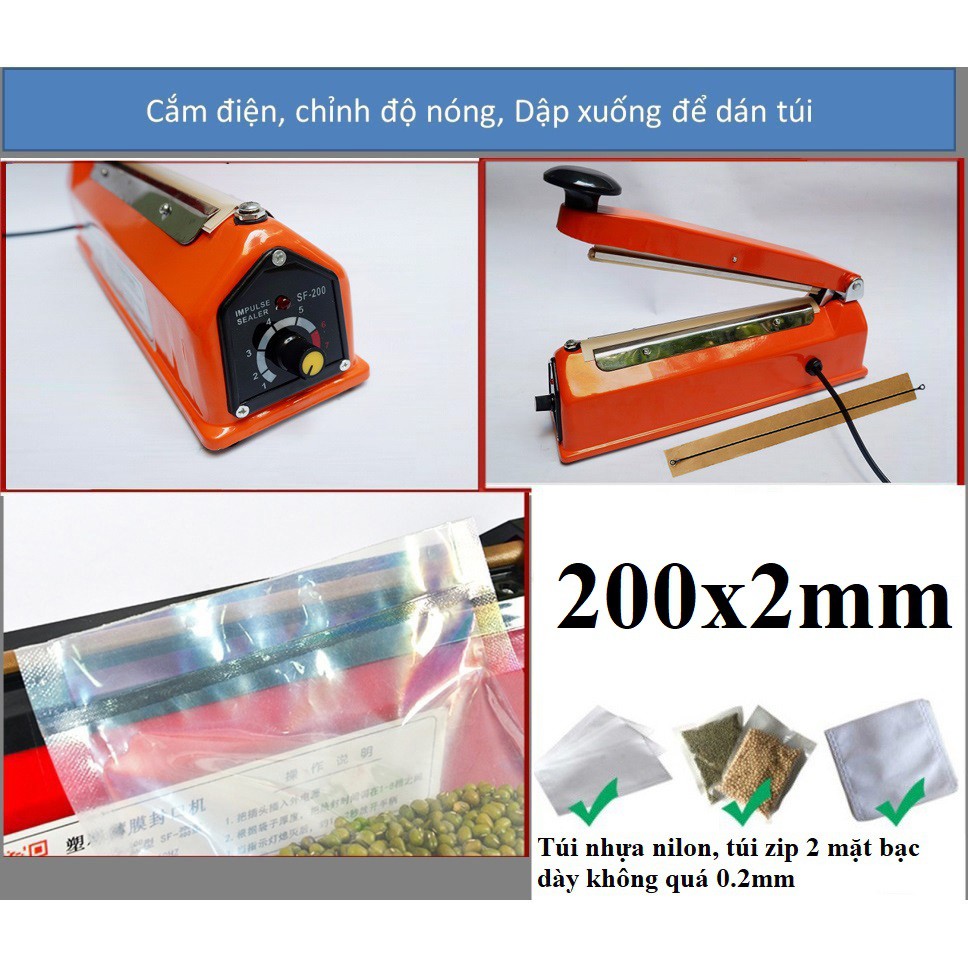 Nhà cửa & Đời sống > Dụng cụ nhà bếp > Dụng cụ hút chân không || (200x2mm) MÁY HÀN VỎ SẮT sơn tĩnh điện 200mm - Hàn túi zip bạc, nilon PP/PE, đường hàn 20cmx2mm, bảo hành 3 thángCòn hàng