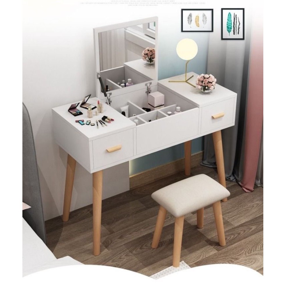 [2021] Bàn Trang Điểm 3 Ngăn Chân Cao Kèm Gương Hiện Đại - Tủ Gương Trang Điểm Gỗ Hàn Quốc Cao Cấp Home Decor