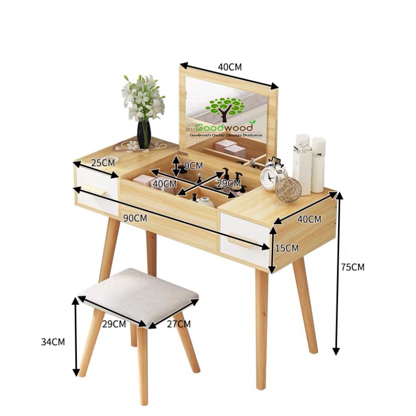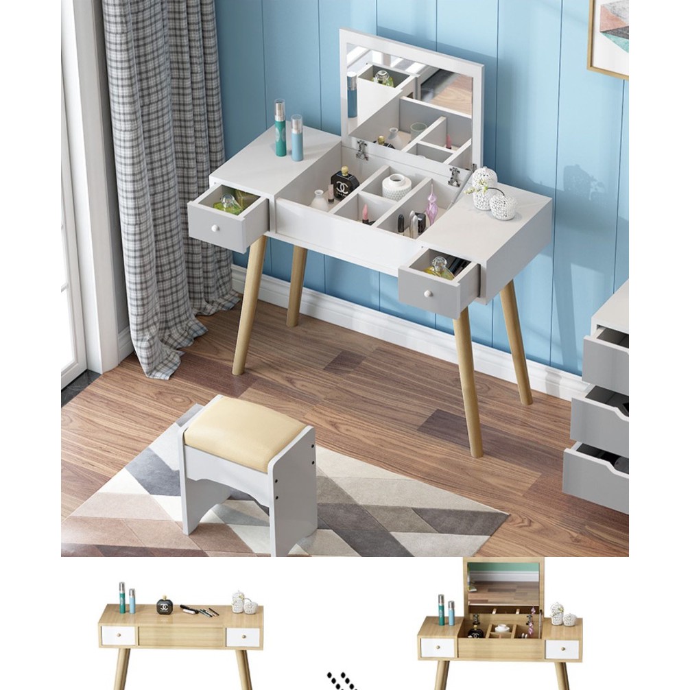 Nhà cửa & Đời sống > Trang trí nhà cửa > Gương || [2021] Bàn Trang Điểm 3 Ngăn Chân Cao Kèm Gương Hiện Đại - Tủ Gương Trang Điểm Gỗ Hàn Quốc Cao Cấp Home DecorCòn hàng