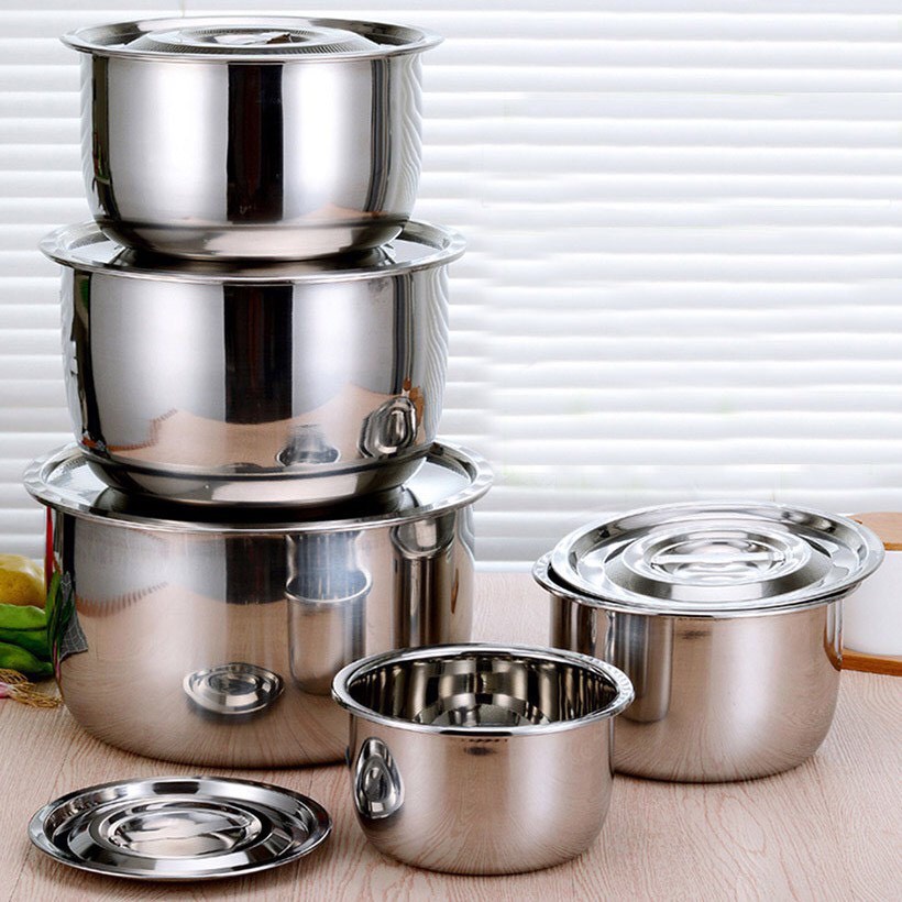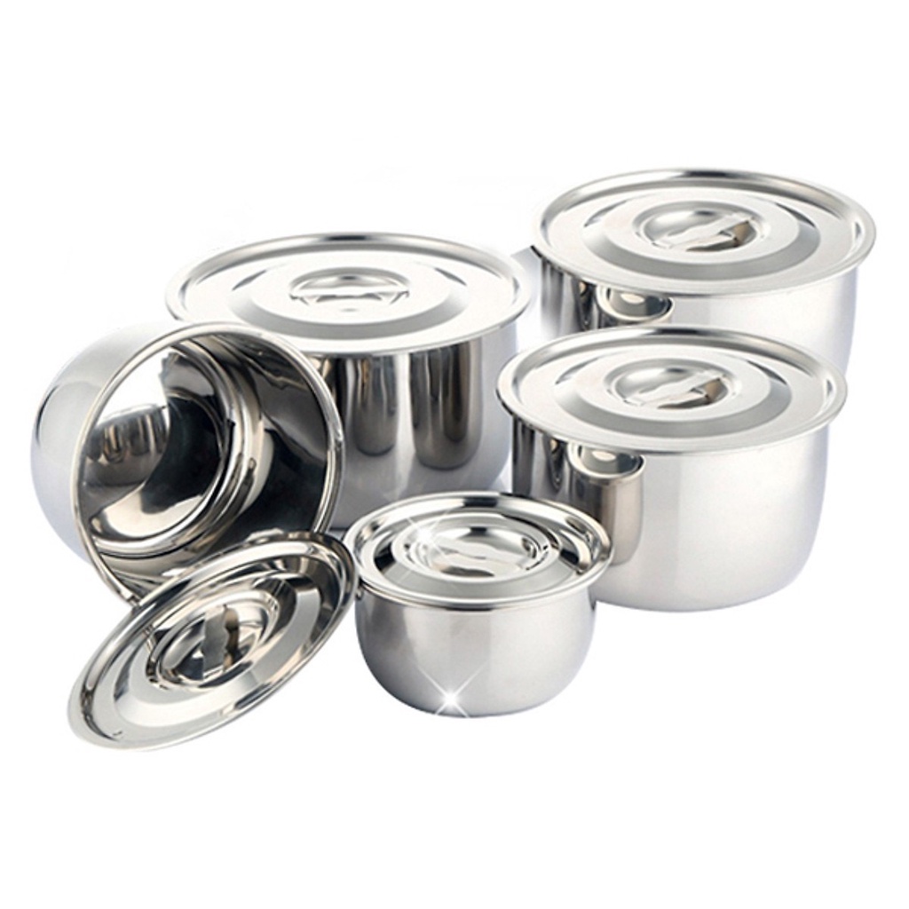 Nhà cửa & Đời sống > Dụng cụ nhà bếp > Nồi || [mới 2021] Bộ Nồi Inox 5 Món Không Quai Đủ Kích Cỡ Siêu Tiện Lợi Đa Năng - Bộ 5 Nồi Inox Có Nắp Không QuaiCòn hàng
