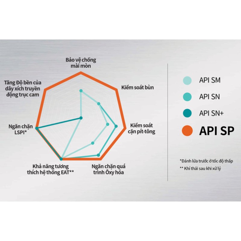 - Tiêu chuẩn: API SP-RC, ILSAC GF-6