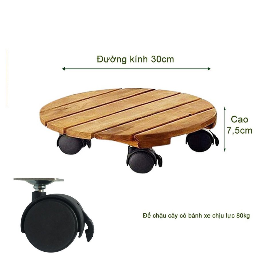 Đế chậu cây có bánh xe Tròn được làm bằng những thanh gỗ chất lượng cao, bền và chắc chắn, bánh xe đúc chịu được trọng lượng đến 80kg. Chịu nhiệt độ cao, chống tia cực tím, chống thấm nước, mạnh mẽ và bề.