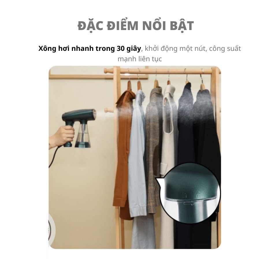 - Bàn là Garment Steamer có công suất cực mạnh 1500W, đáp ứng hầu hết nhu cầu là ủi quần áo