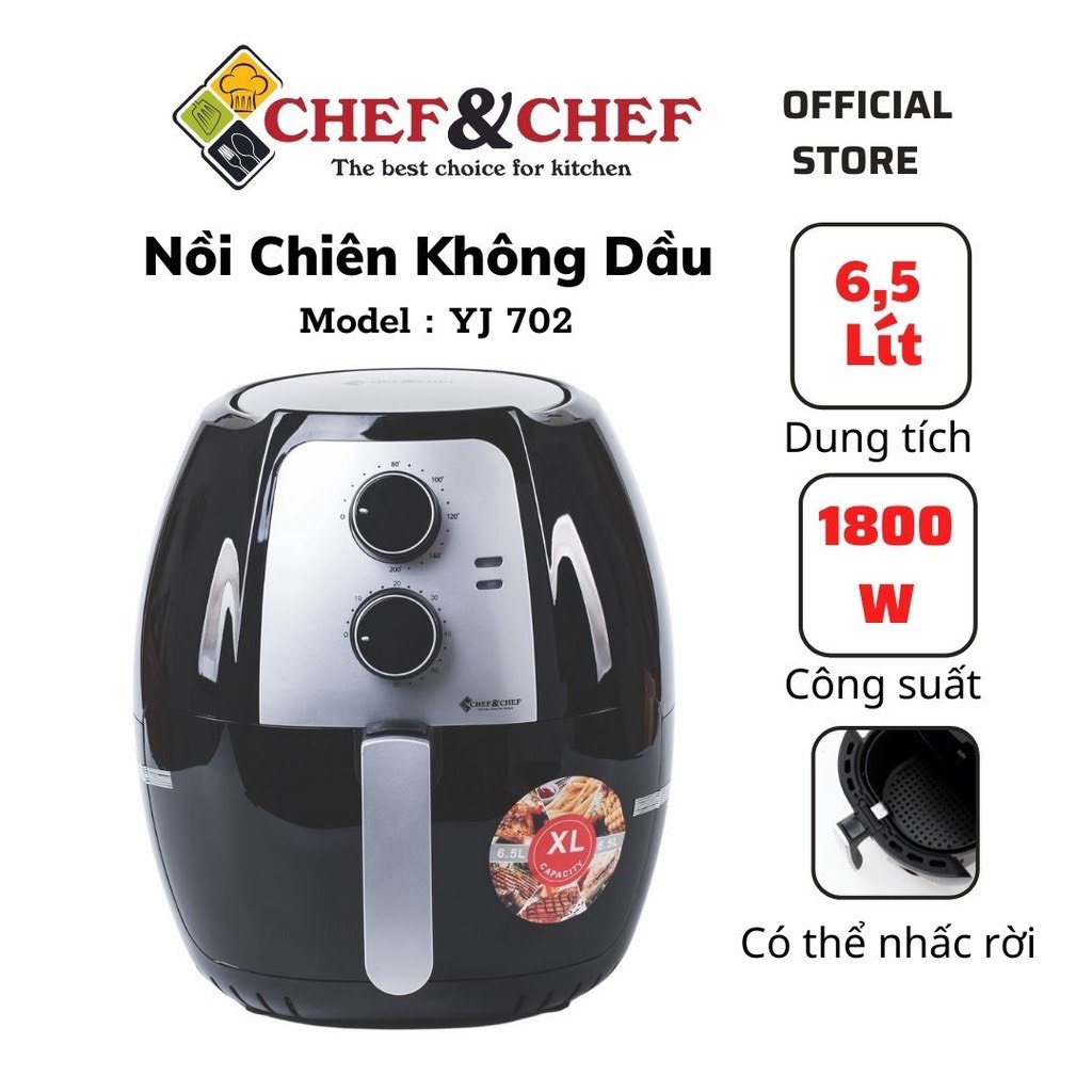 Giới thiệu [ Giảm 20k đơn 50k] [SIÊU RẺ] NỒI CHIÊN KHÔNG DẦU CHEF&CHEF YJ-702 DUNG TÍCH ĐẠI 6,5L ( bảo hành 12 tháng )