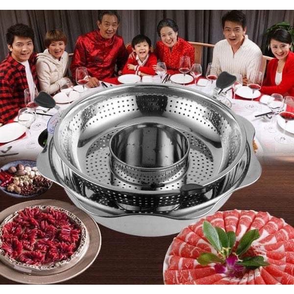 - Với thiết kế cực kỳ thông minh và tiện lợi. Nồi chia làm 2 tầng và 2 khoang, đáp ứng được sở thích của cả gia đình. Với 2 khoang có thể dung nước cùng 1 lúc. Còn thiết kế 2 tầng với nồi cố định và 1 khay khi xoay lên thì có thể lọc được toàn bộ đồ ăn đã nhúng. Giờ thì các mẹ khi ăn khỏi phải lo ngồi vớt mà vẫn bị sót đồ ăn rồi ạ.