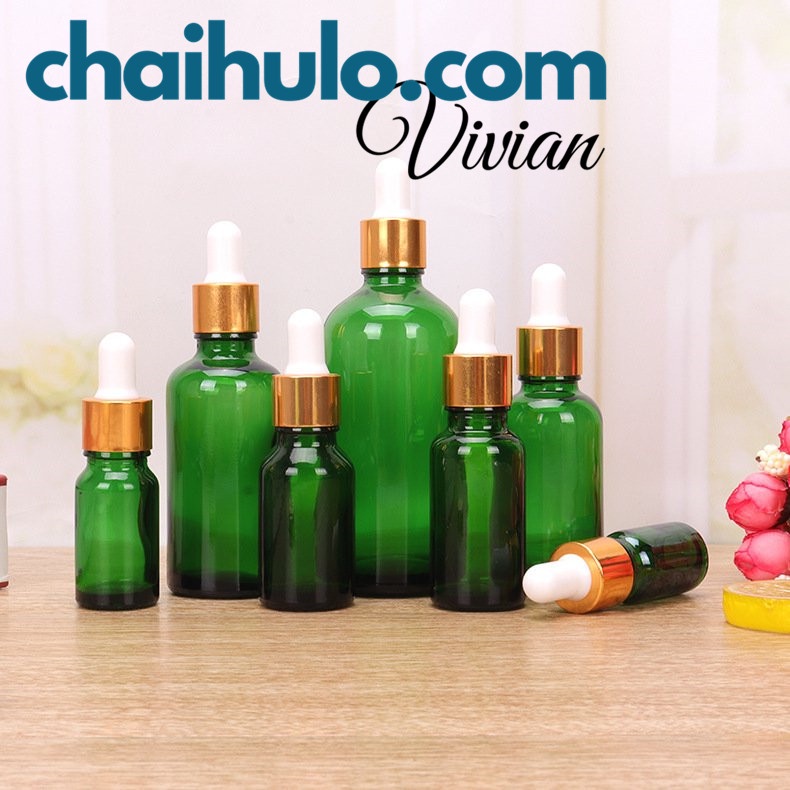 Giới thiệu 20ml - Lọ Chiết Mỹ Phẩm Lọ Chiết Serum Mini Chai Lọ Thủy Tinh Đựng Tinh Dầu Màu Xanh lá Nắp Bóp Đen/Vàng Nhỏ Giọt