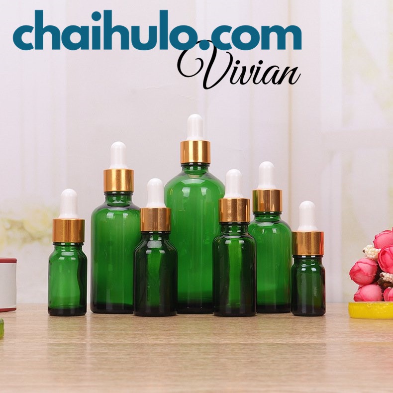 20ml - Lọ Chiết Mỹ Phẩm Lọ Chiết Serum Mini Chai Lọ Thủy Tinh Đựng Tinh Dầu Màu Xanh lá Nắp Bóp Đen/Vàng Nhỏ Giọt*ĐẶC ĐIỂM NỔI BẬT