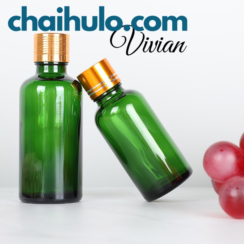 Nhà cửa & Đời sống > Chất khử mùi, làm thơm nhà > Khác || 20ml - Lọ thủy tinh, lọ đựng tinh dầu serum thân xanh lá nắp vặn nhôm vàng trơn nhỏ giọtCòn hàng