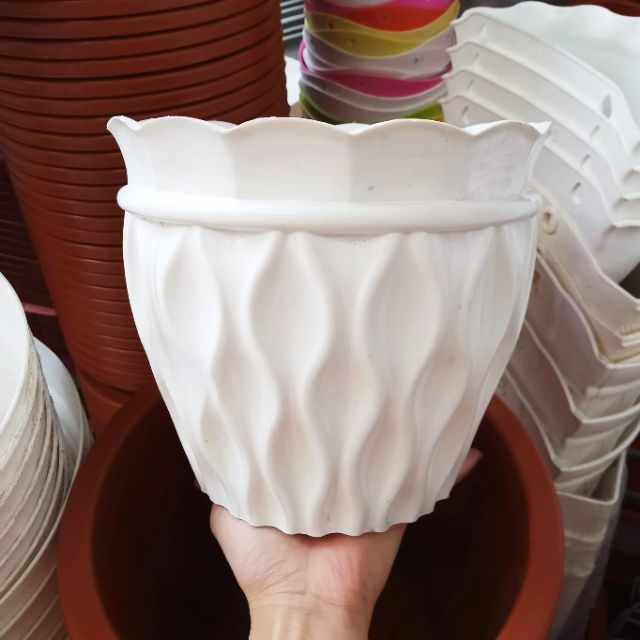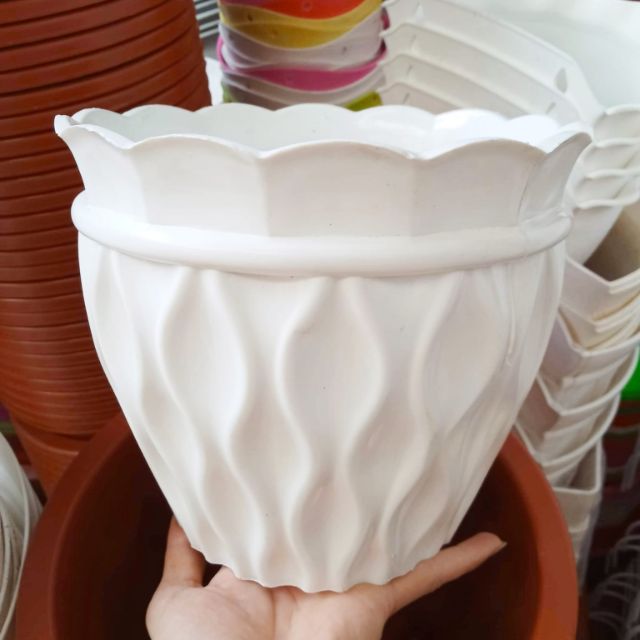 Chậu nhựa cứng cao cấp vân lưới miệng hoa được sử dụng phổ biến ở hầu hết các không gian nhỏ, vưà và rộng đều không làm ẩn đi vẻ đẹp của chậu.Chậu nhựa cứng giúp giữ phom dáng chậu bền qua nhiều năm sử dụng.