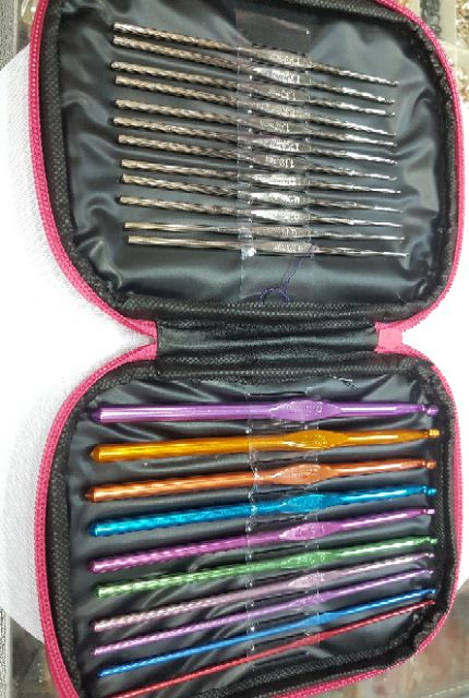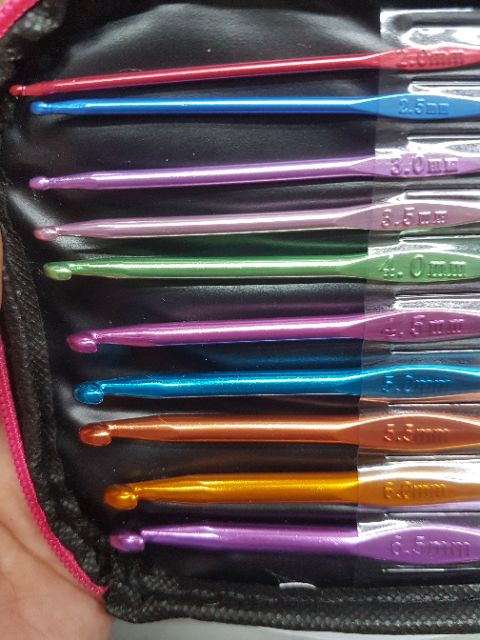 Bóp đựng 22 cây móc các số từ 0,6mm đến 6,5mm, đầy đủ các số để các bạn thỏa thích móc các loại sợi len, sợi cotton, sợi vải....Giá 145k/bóp 22 cây móc