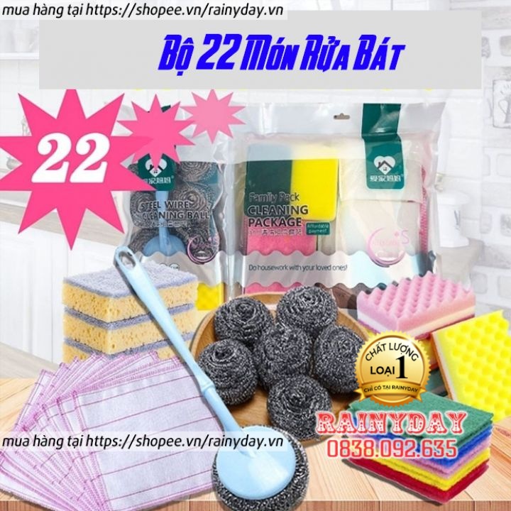 Nhà cửa & Đời sống > Dụng cụ chăm sóc nhà cửa > Miếng bọt biển, miếng chà vệ sinh || Bộ 22 miếng cọ rửa bát chén xoong nồi, miếng xốp, bọt biển, búi giác sắt chà rửa nhà bếpCòn hàng