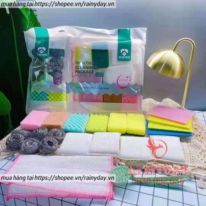Giới thiệu Bộ 22 miếng cọ rửa bát chén xoong nồi, miếng xốp, bọt biển, búi giác sắt chà rửa nhà bếp