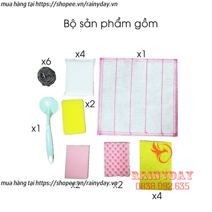 Bộ 22 miếng cọ rửa bát chén xoong nồi, miếng xốp, bọt biển, búi giác sắt chà rửa nhà bếp