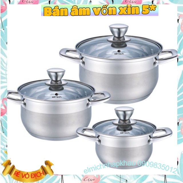 2353337 Bộ nồi inox Elmich 3 chiếc cỡ 16,20,24cm SM3337 nhập trực tiếp cộng hòa séc