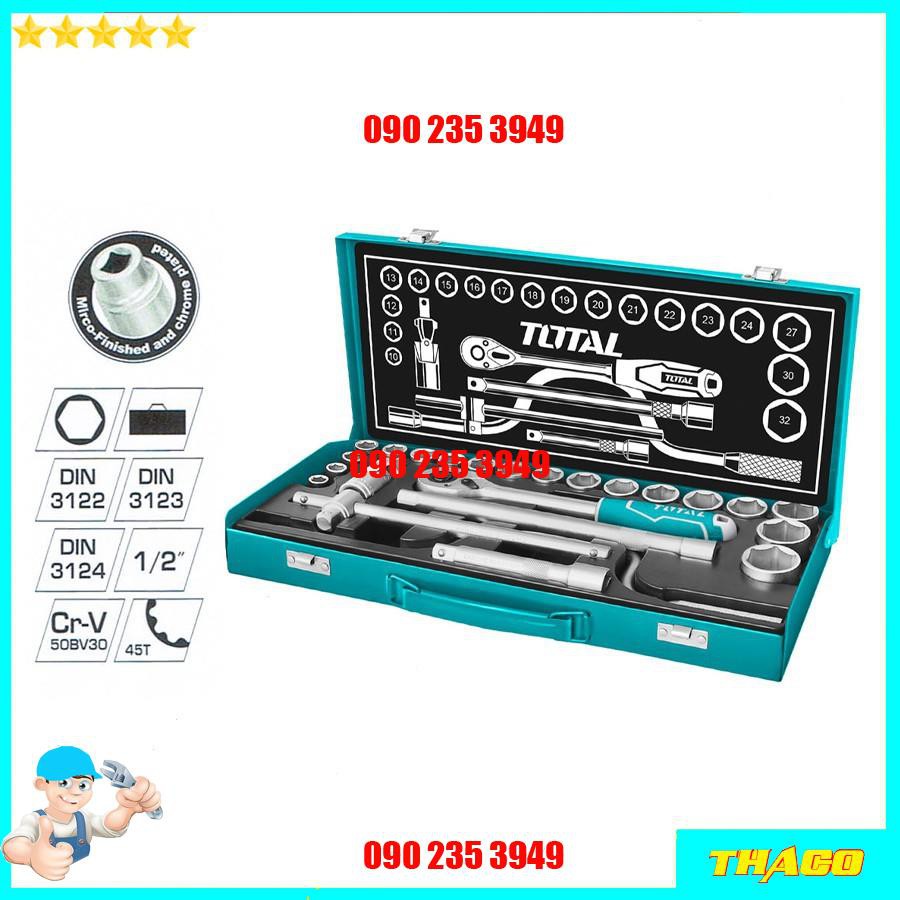 Bộ 24 - 25 cái đầu tuýp (1/2 inch) & cần 2 chiều Total - Ingco- Thương hiệu: Total - Ingco
