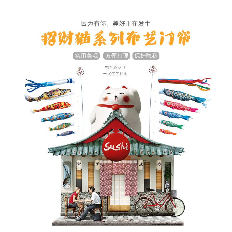 Giới thiệu [24 MẪU] Rèm cửa in họa tiết mèo may mắn phong cách Nhật Bản xinh xắn + bao gồm thanh màn chắc chắn