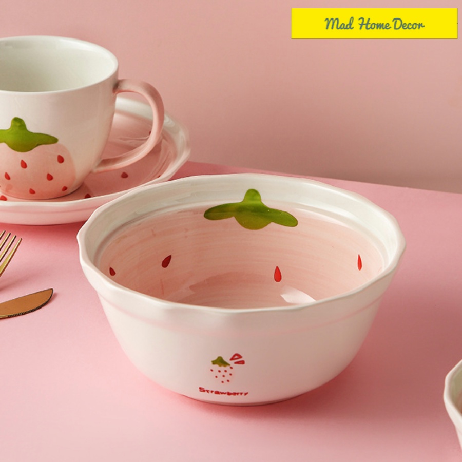 Bộ 24 món bát, chén, đĩa gốm sứ Hàn Quốc họa tiết dâu tây - Phong cách Vintage