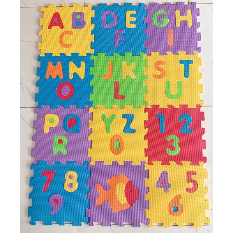 Thảm xốp lót sàn cho bé hình chữ số với màu sắc nổi bật, giúp cho bé vừa học vừa chơi. mẹ có thể trải ra sàn, hoặc ghép thành khối hợp để bé chơi. độ dày lên tới 1cm, nên trẻ có thể thoải mái vận động, tập bò tập đi nếu coa ngã, hay bị cộc đầu xuống sàn củng không sao, vì thảm này rất dầy và êm ái, thảm có tính cách cách nhiệt cao, nên ban cũng không phải lo khi bé nằm, cũng không cần lo khi bé nằm lâu sẽ bị lạnh tay lạnh lưngkích thước mỗi miếng 30x30x1cm