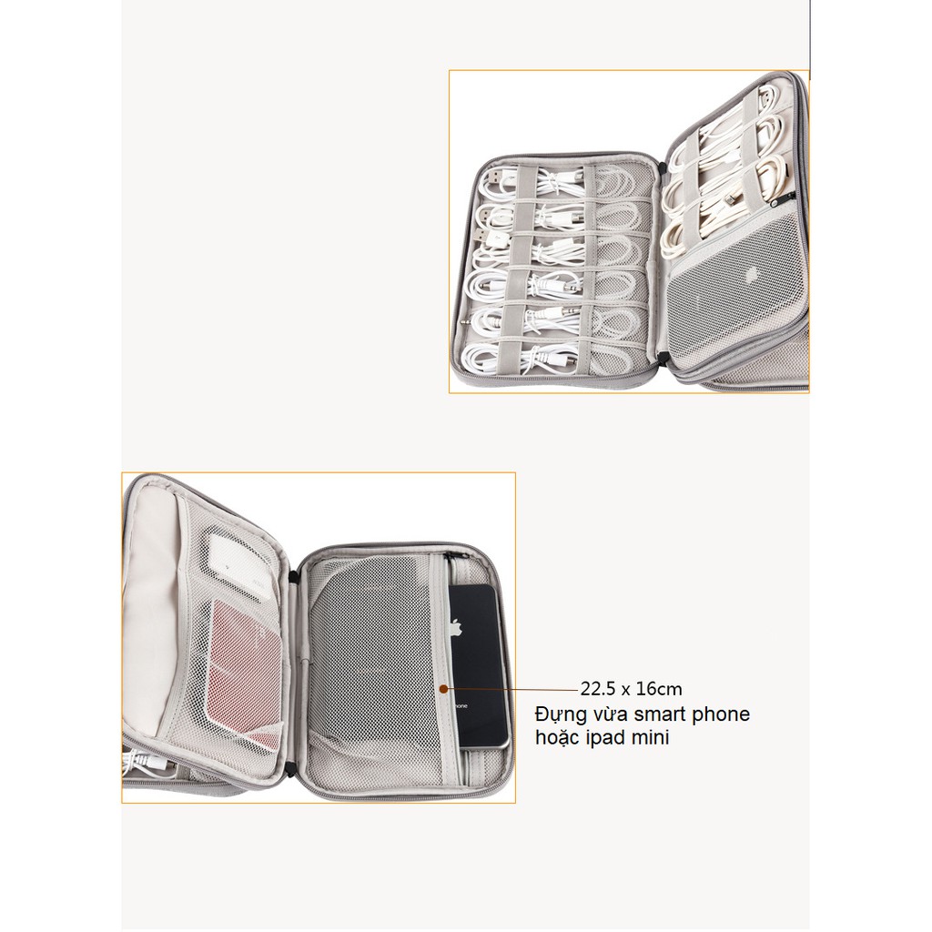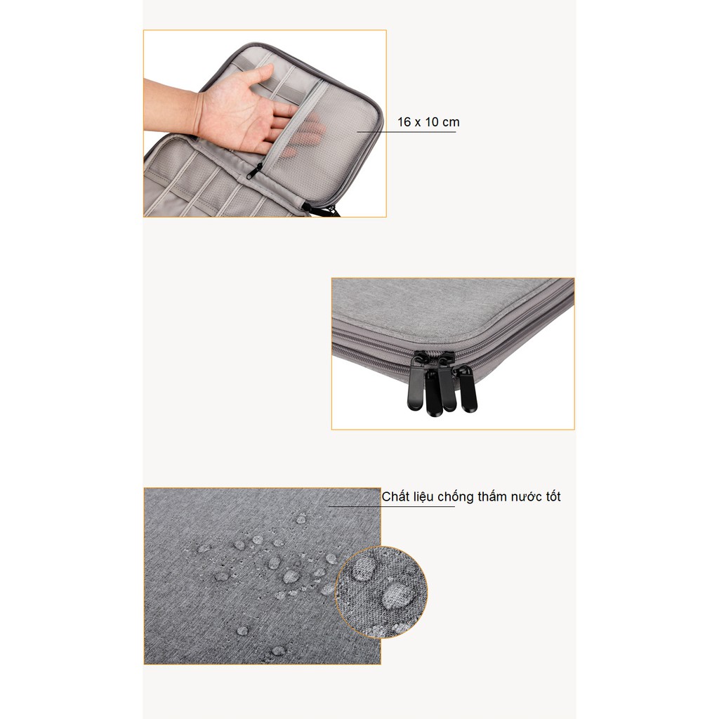 + Túi đựng có nhiều ngăn nhỏ đựng cáp sạc, tai nghe.
