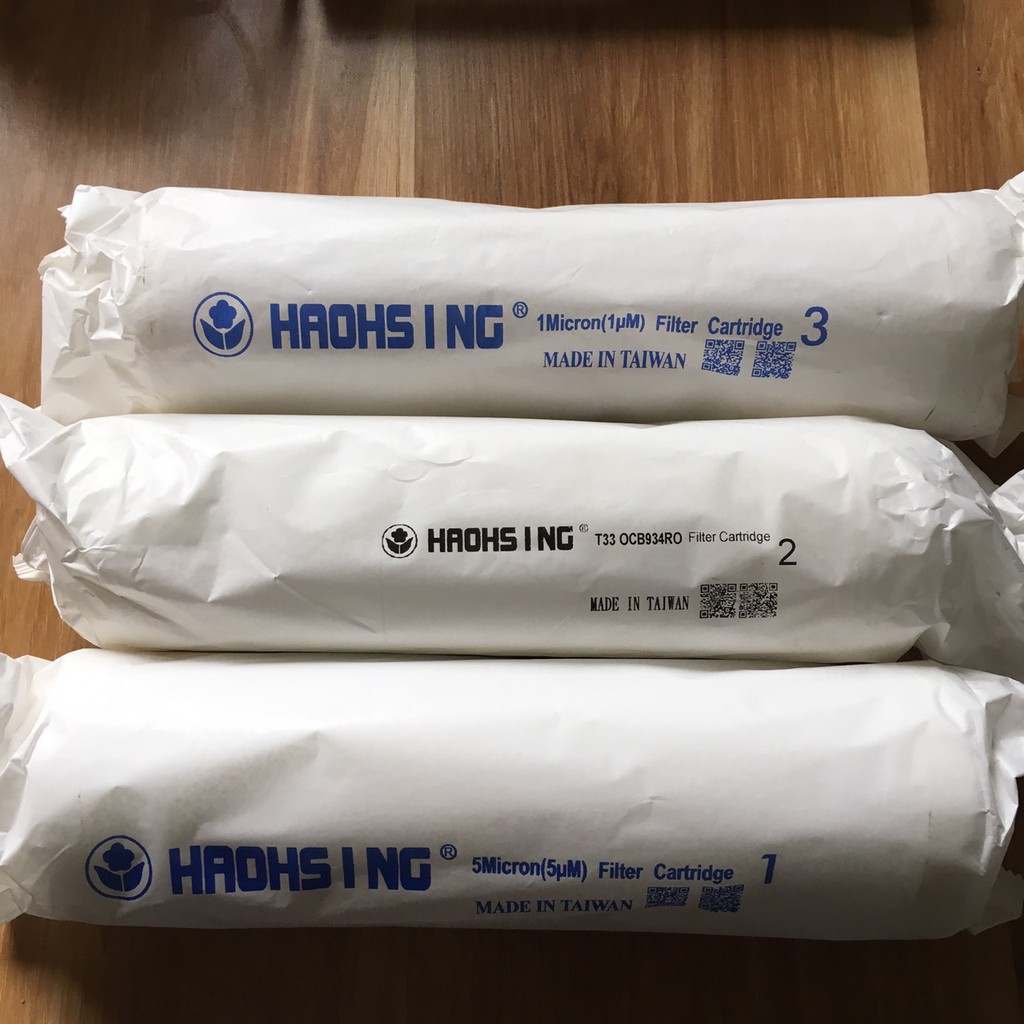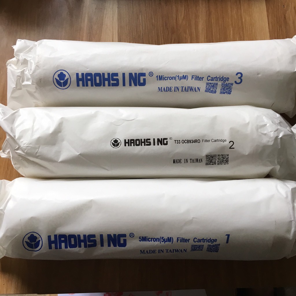 Lõi lọc nước haohsing số 3 (Filter cartridge 1µm): Hiệu suất lọc 36.000 lít tác dụng loại bỏ các chất có kích thước > 1µm, vi khuẩn, bùn, đất. Thay thế sau 12 đến 15 tháng hoặc nhanh hơn tùy thuộc nguồn nước sạch bẩn