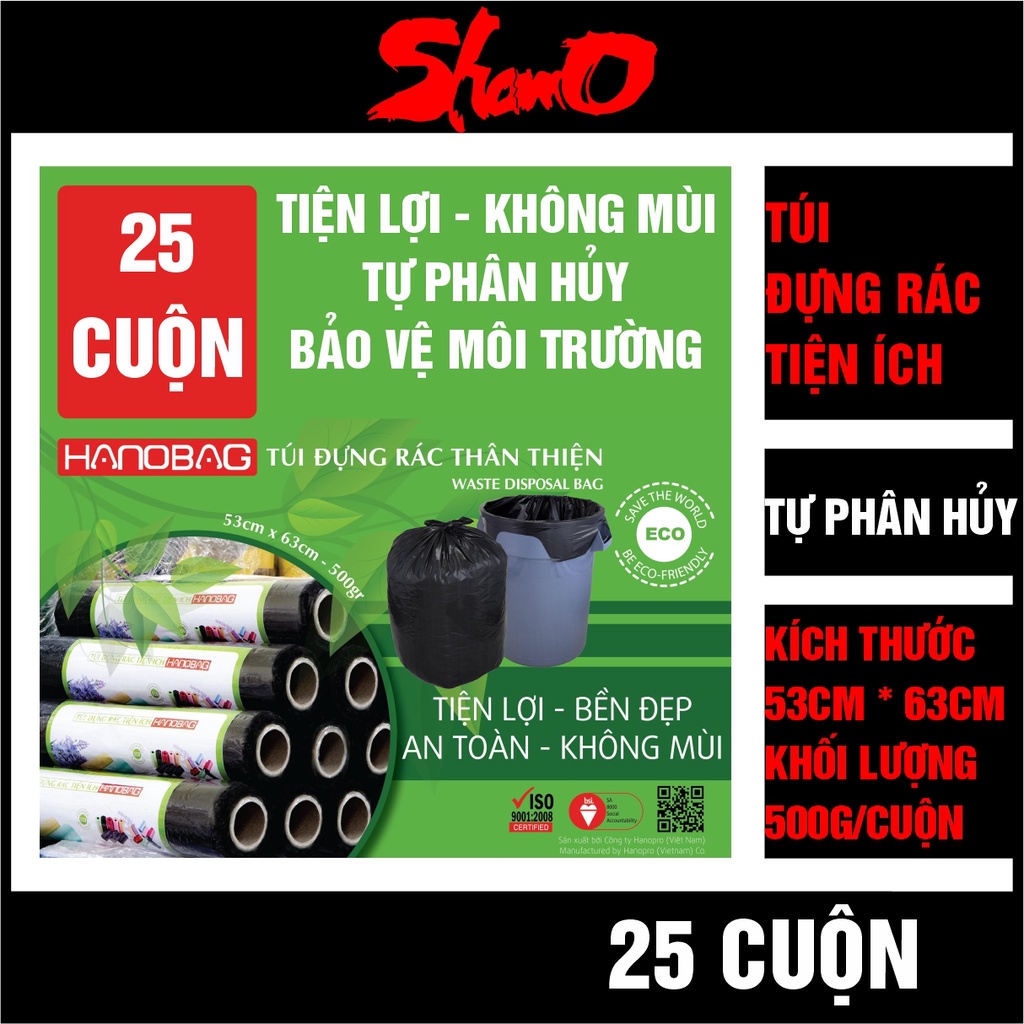 [25 cuộn] Cuộn túi rác đen (KT: 53cm x 63cm x 500g) – Màu đen – Túi dày và sạch không mùi – Xé tay tiện lợi – Tự phân hủyTHÔNG TIN SẢN PHẨM: