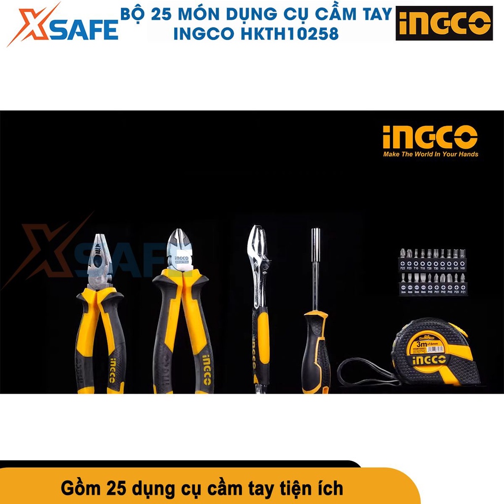 Bộ 25 dụng cụ cầm tay INGCO HKTH10258Được nhập khẩu và phân phối chính hãng bởi Bảo hộ Xsafe