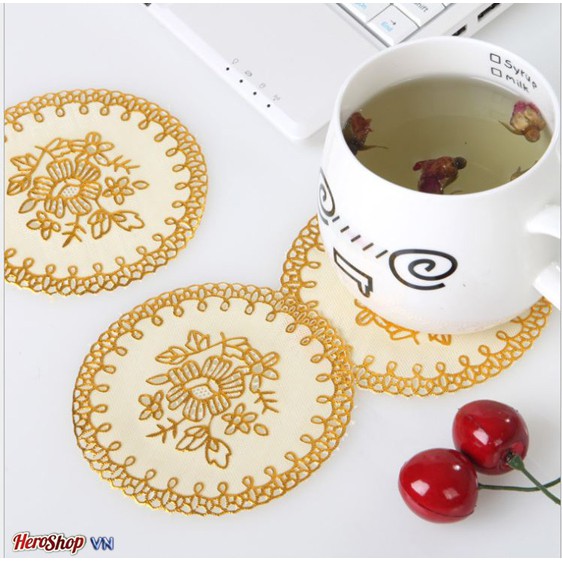 Thông tin chi tiết sản phẩm:Tên sản phẩm: Bộ 25 Miếng Lót Ly Nhũ Vàng - Trắng Không Thấm Nước Sang Trong