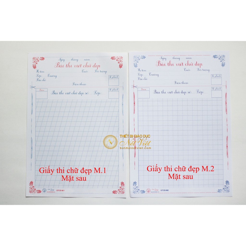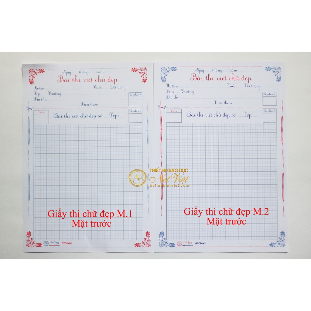 Định lượng 100g/m2. Tiêu chuẩn viết không nhòe, không thấm mực. Độ trắng 90-95 ISO chống lóa mắt.***Giấy thi chữ đẹp thầy Ánh